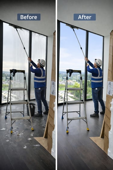 We provide interior and exterior window cleaning for offices, storefronts, and commercial buildings, using professional equipment and controlled, jobsite-safe methods to maintain a clean, polished appearance.