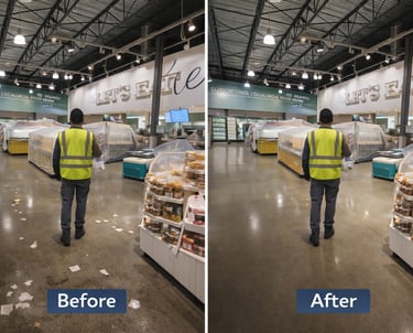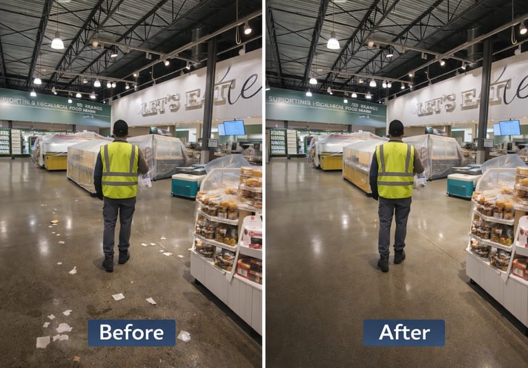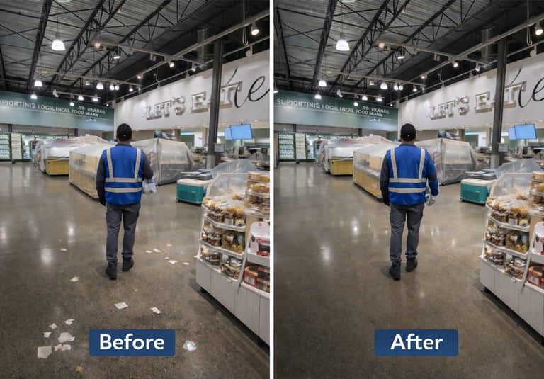 For this project, maintaining a clean and organized commercial environment was essential. Our team focused on consistent, detail-oriented cleaning to support daily operations and maintain a professional appearance throughout the space.